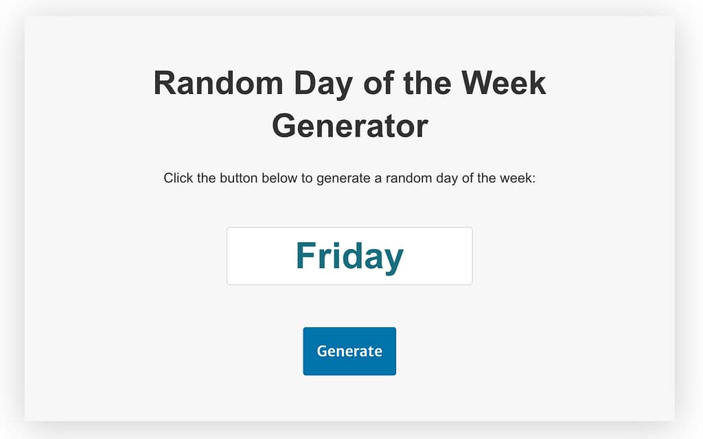 It’s that simple! You can use the generator as many times as you like to get a new random day of the week.